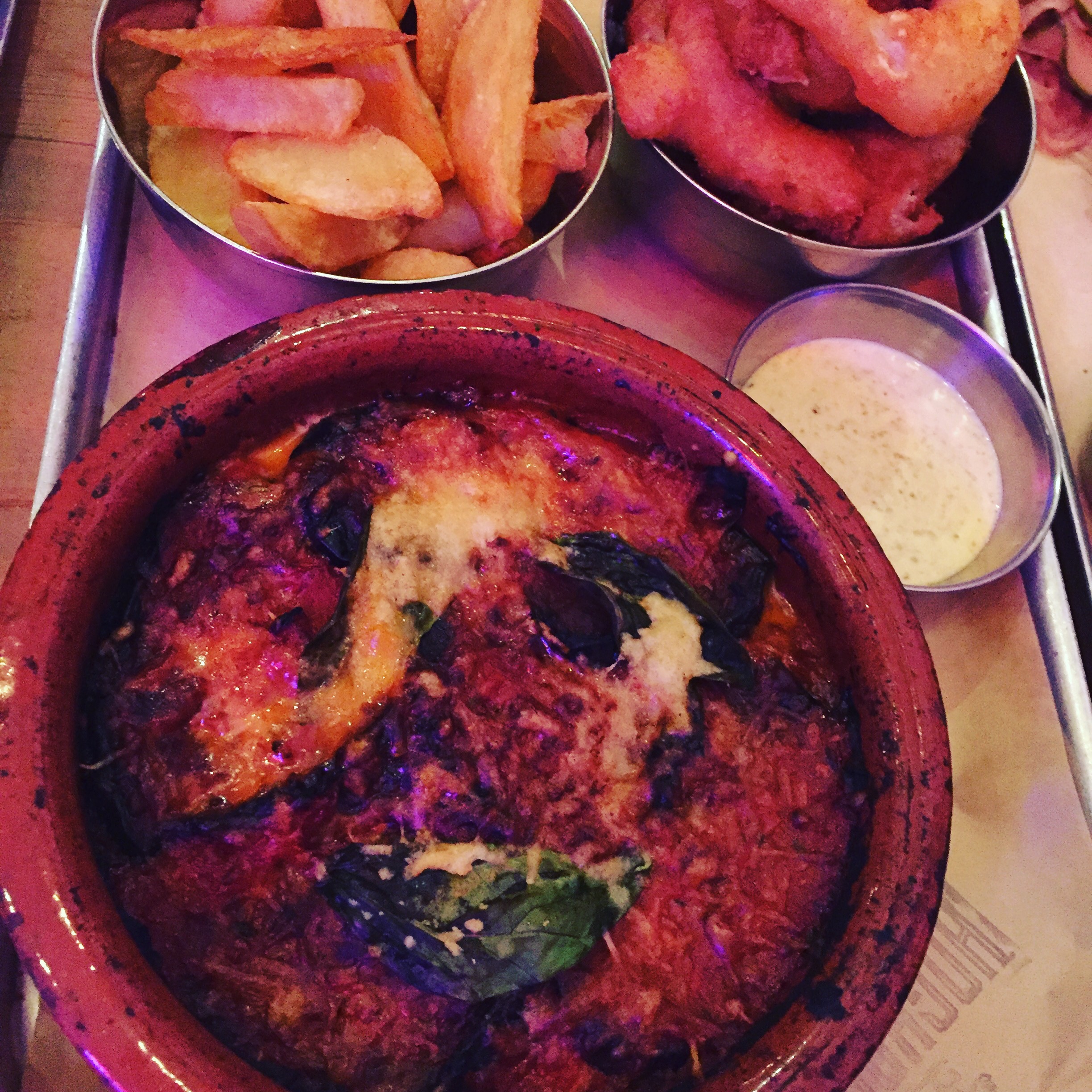We rounded it all off with three portions of chips, two portions of onion rings and two portions of eggplant parmigiana.