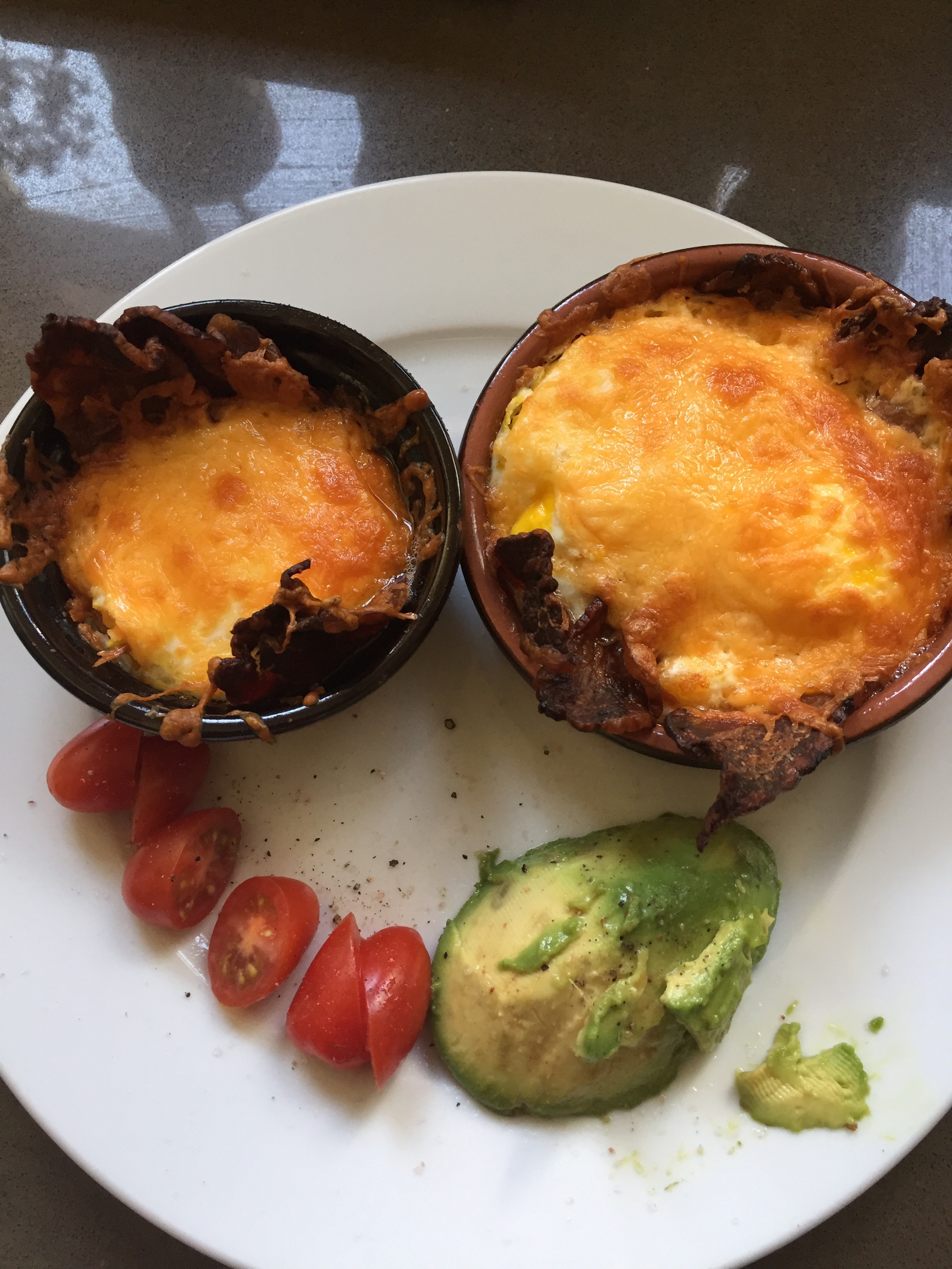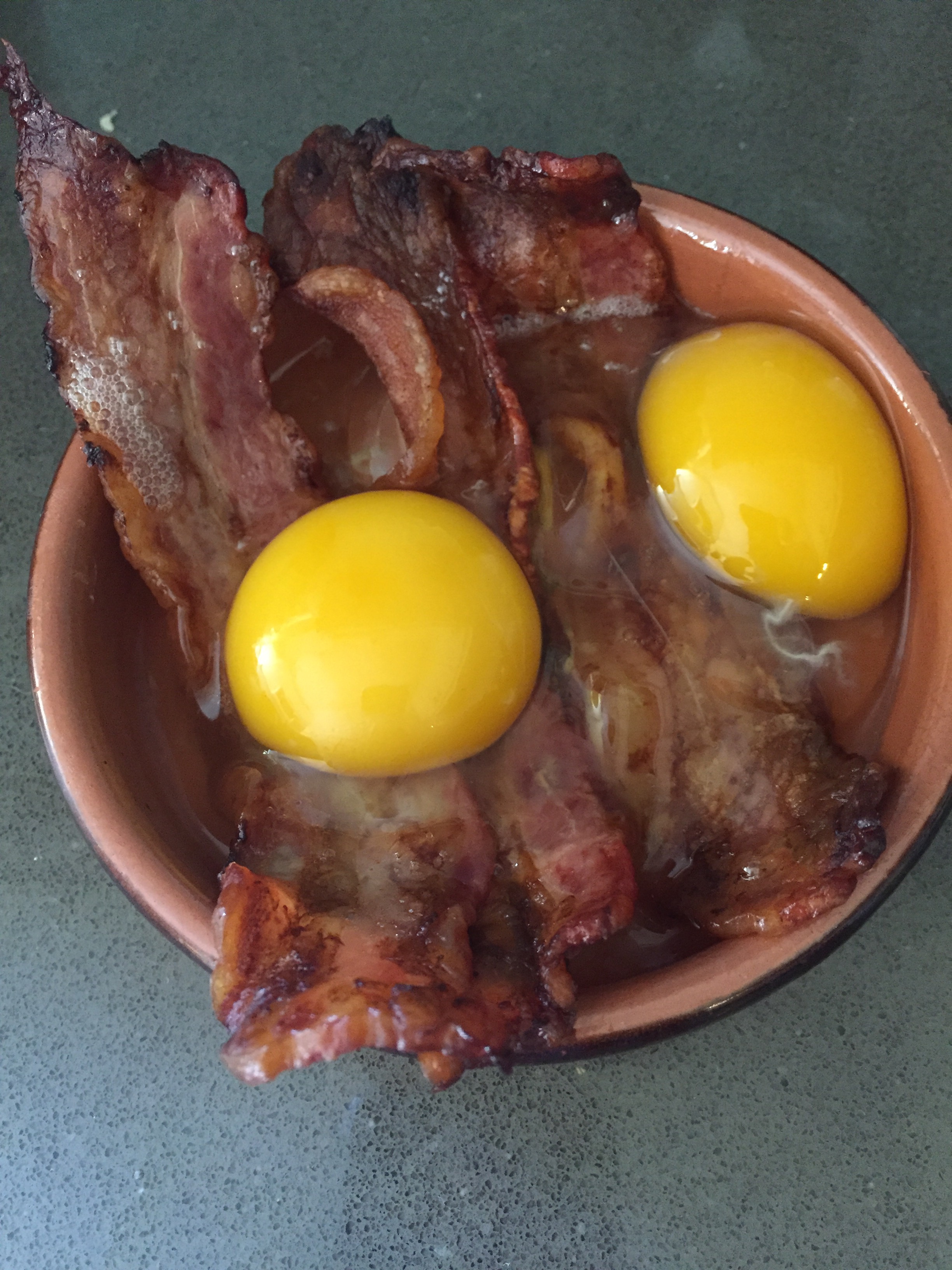The next morning Norm and I had a long lie in with our coffees and iPads and Lily and Josh headed off back to Mossel Bay. Once we finally got up I decided to make a banting breakfast so I grilled some streaky bacon and then lined a little oven proof pot with it, cracked in an egg or two, then topped it with cheese and baked them.