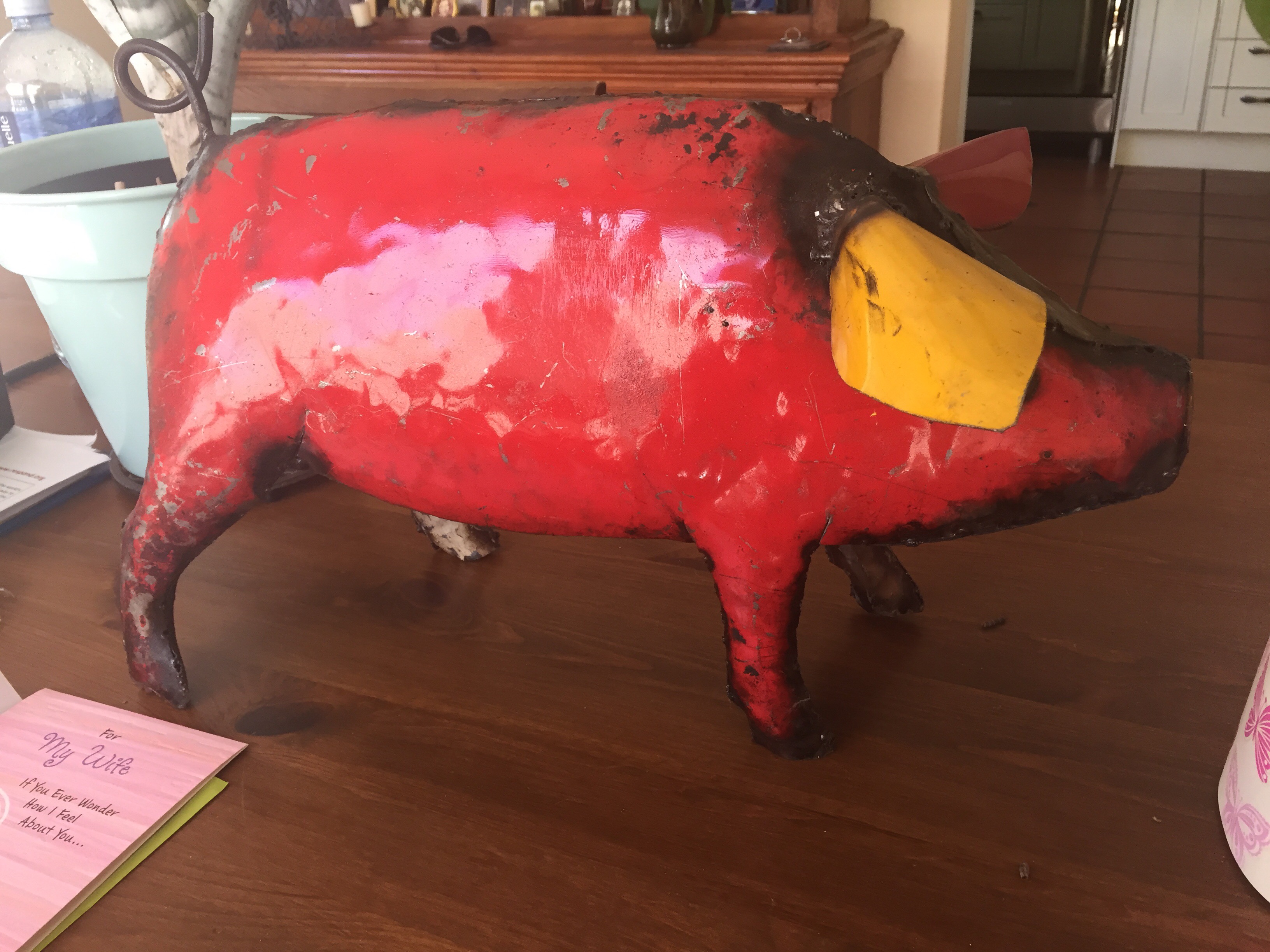 I ripped open the box to find that Norm had bought me the metal pig I had been coveting for months.