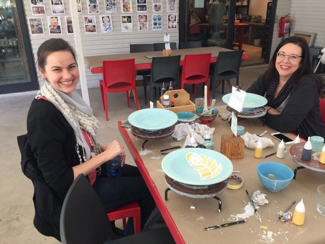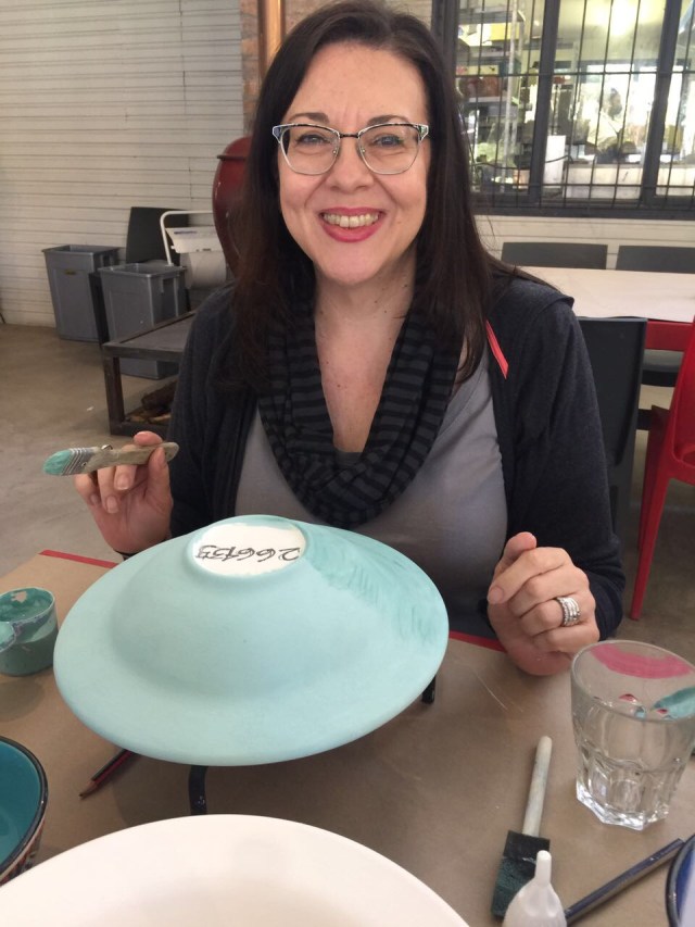 Then after we finished our food we got stuck into painting. Your table has a number and you all paint it on the bottom so they know which item relates to which order when you come to collect it after they fire it in the kiln.