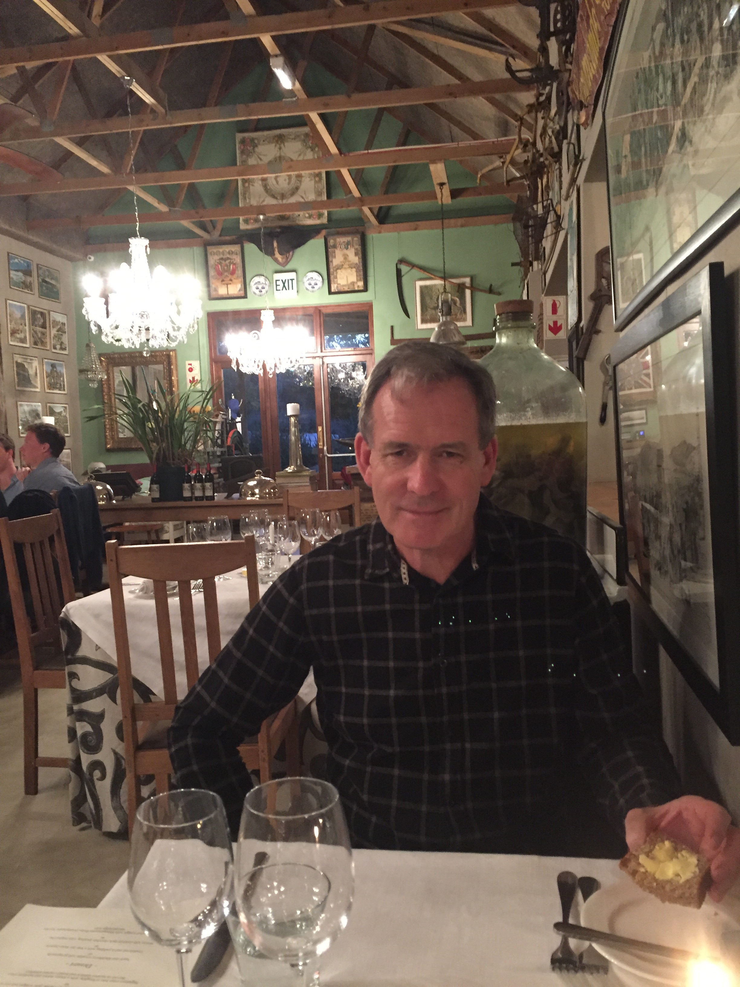 We polished off a bottle of wine between us and did not stay out terribly late. It was great to see the venue busy and full. I do love the vibe there, you feel very spoiled by the staff. It is walking distance from our house and if we lived in Europe we would stroll there. But if we tried that here we would at a minimum be mugged. I don’t want to consider the worst! South Africa can freak one out should one allow those thoughts to take hold.