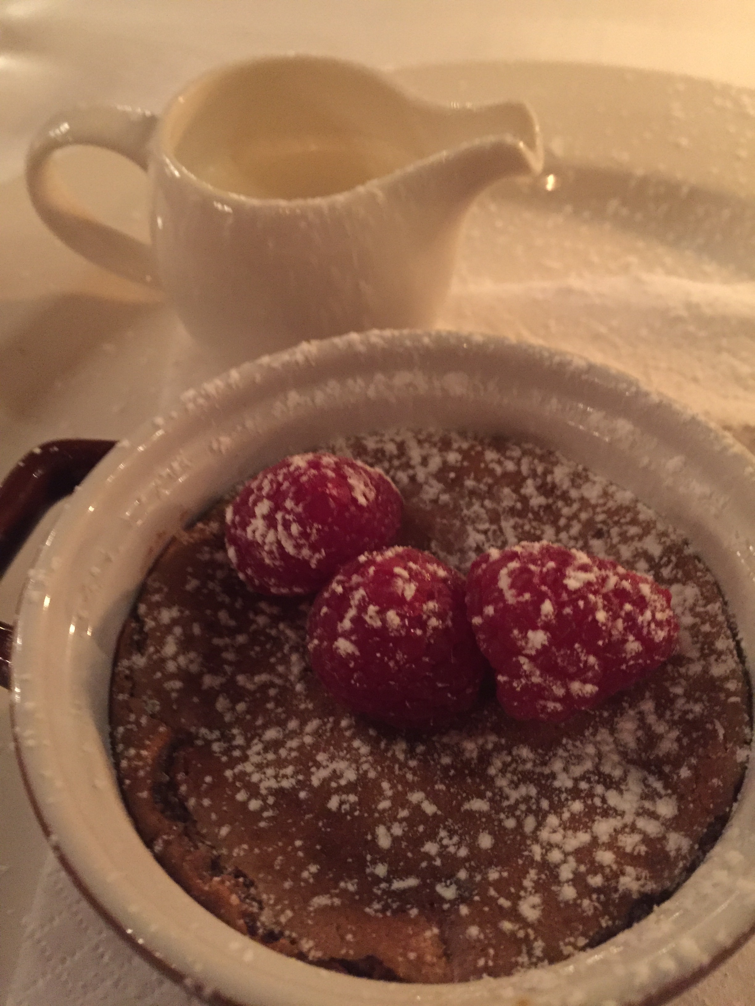 Of course I chose the soft centered dark chocolate pudding with raspberries.