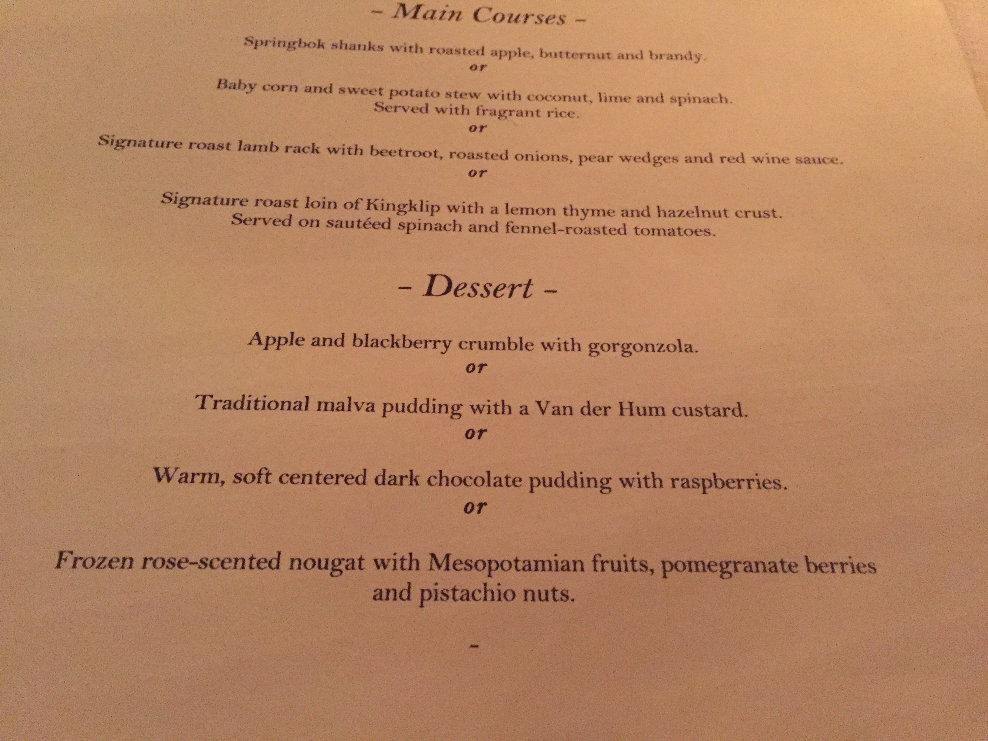 There were 4 mains to choose from.