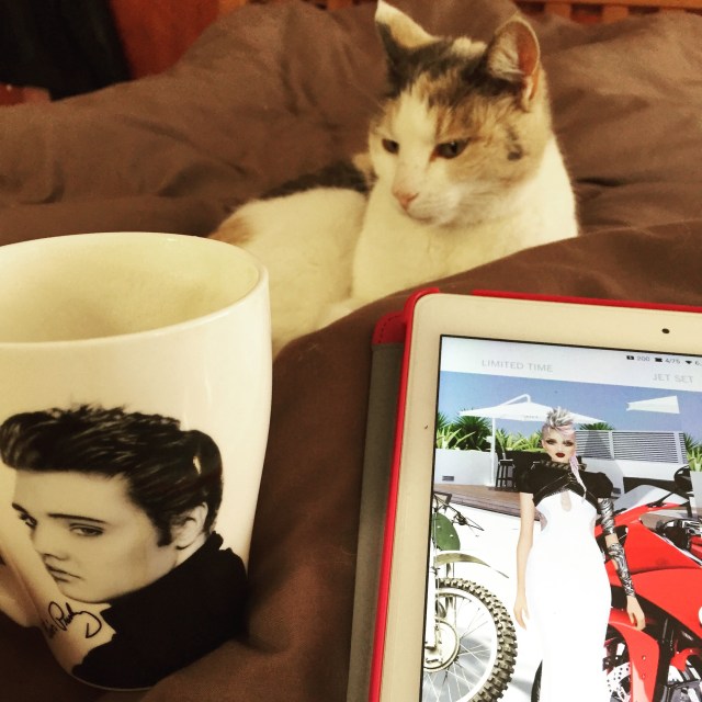 Norm and I had a long lie in again on Sunday morning. Norm brought a coffee back to bed after feeding the dogs. He watched the news on telly and I played covet fashion and cuddled up with Lola.
