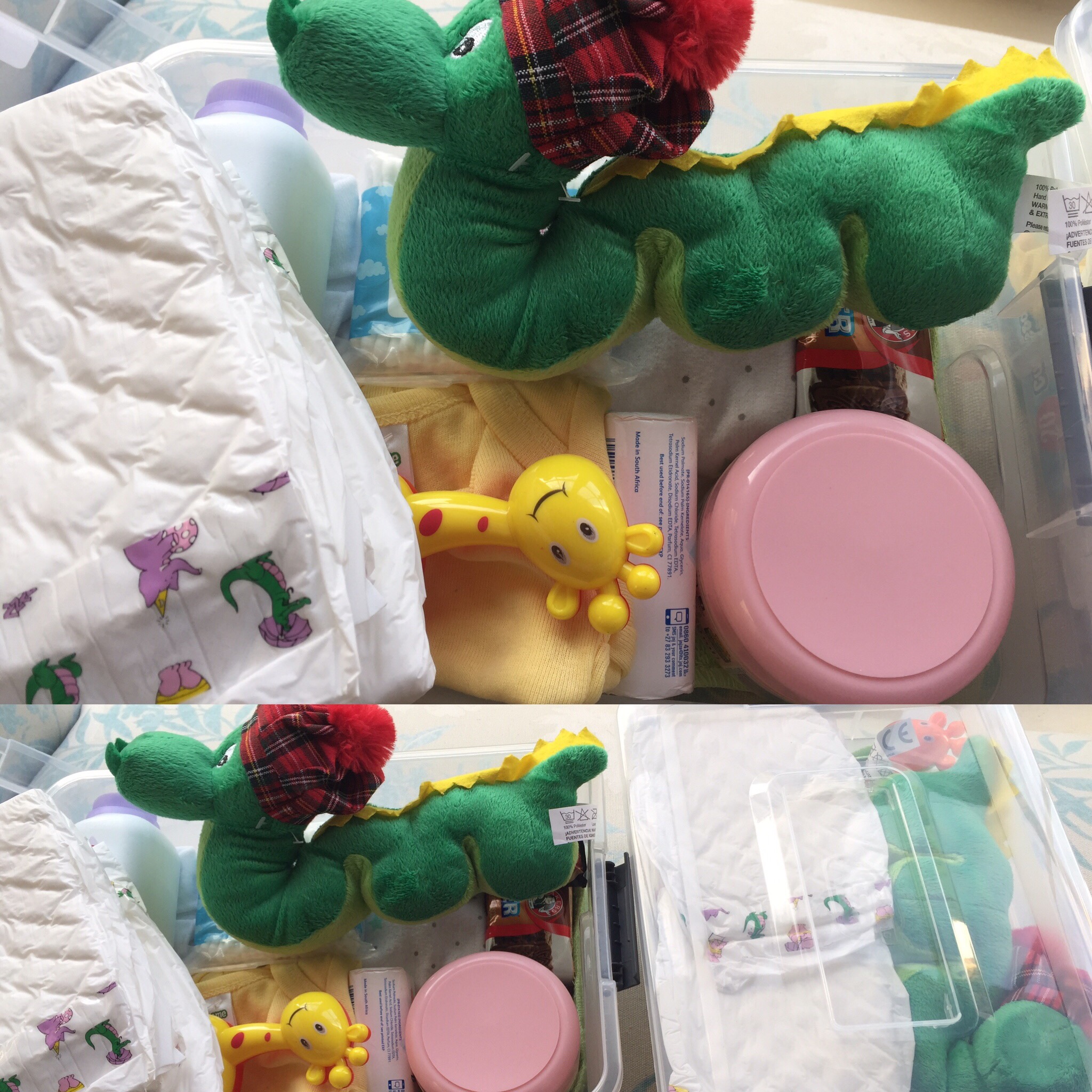 They provide a list of the items you must include as well as a list of things which are optional. I put in a yellow babygro (aka a onesie in some countries), a pair of booties, a baby blanket, baby soap, baby cream, a facecloth, baby powder, a rattle/teething ring, some nappies, baby wipes, earbuds (or QTips for you Yanks :)) a stuffed animal and some chocolate treats for the new mom. I used a hard plastic see through box instead of a shoebox as the mommy will be able to use it for storage afterwards. I chose Nessie as my stuffed animal in tribute to Norm’s Scottish heritage.