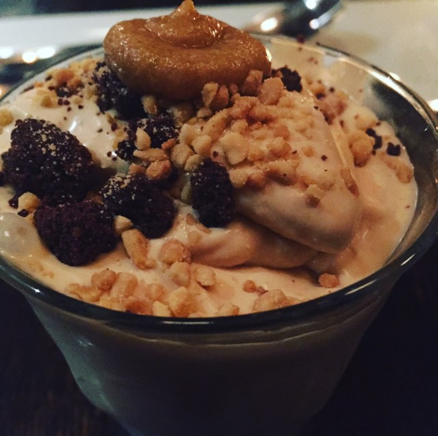 I saved my fourth option for dessert – a choice from the Happy Endings portion of the menu. I really deliberated drifting from my usual choice but at the last minute reverted to form and had the double thick peanut butter shake with toasted peanuts and 70% choc soil.