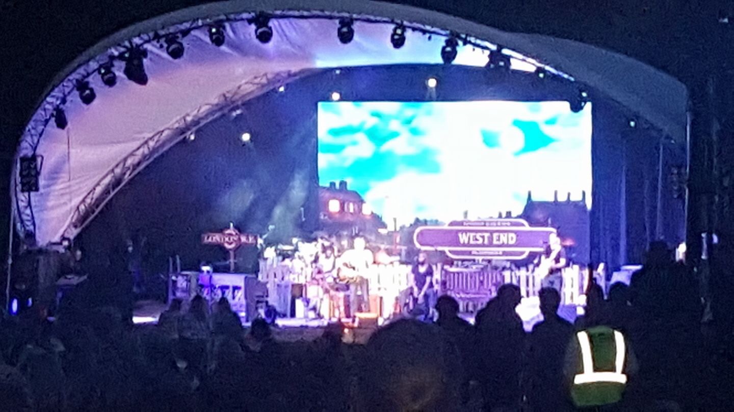 We were quite far away but could just see Yusuf and the band from our seats. Eventually the sun dropped completely and it got very dark so the stage glowed brightly.