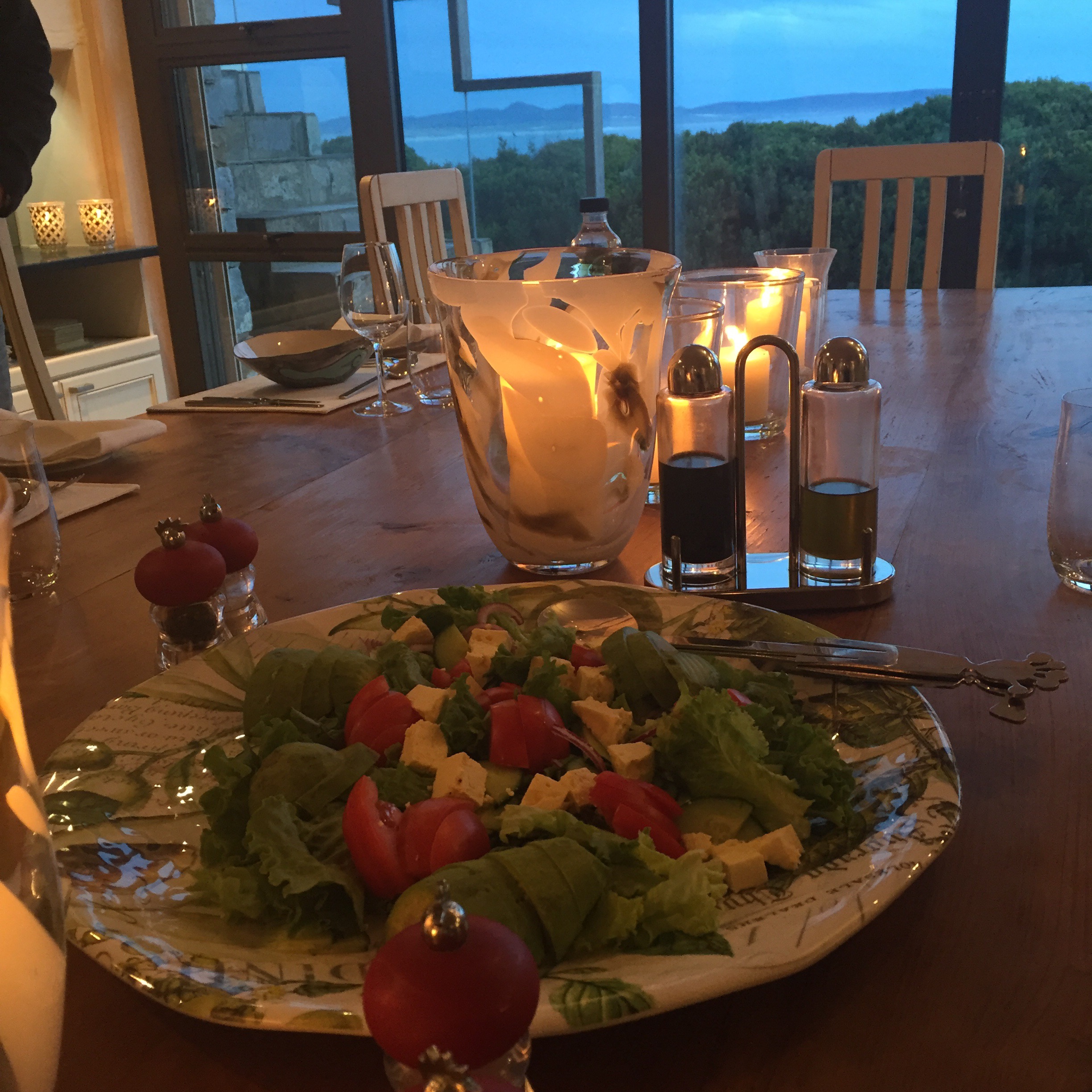 Another couple were joining us on the Friday night and after they arrived we all got settled into our rooms. A bit later we were all called into the kitchen. The staff had prepared dinner for our first night in the villa. The sun was just starting to set and the view of the sea in the background was amazing.