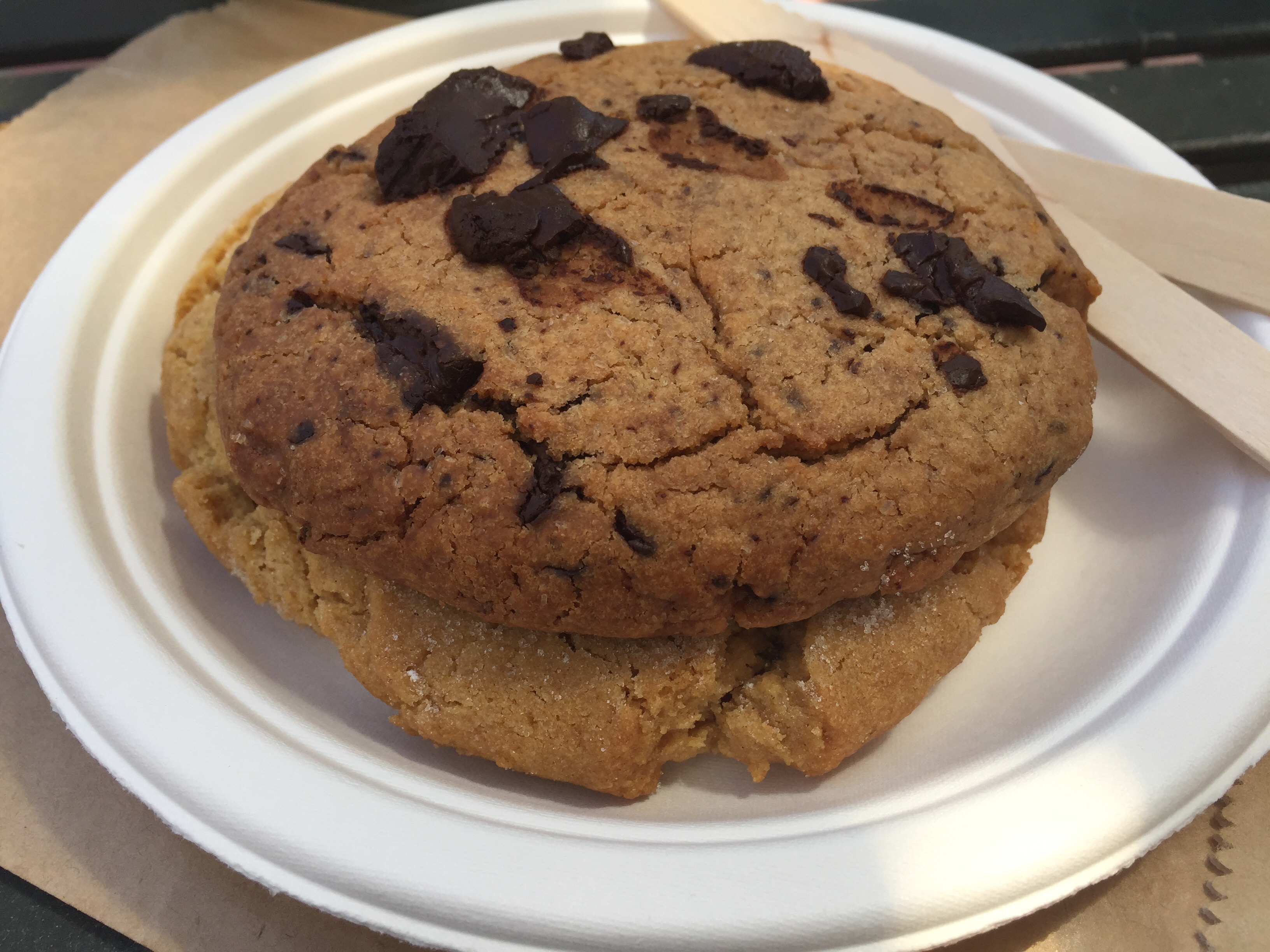 The peanut butter cookie was nice, but the chocolate chip one tasted too wheaty and not chocolatey enough. Norm enjoyed his dessert.