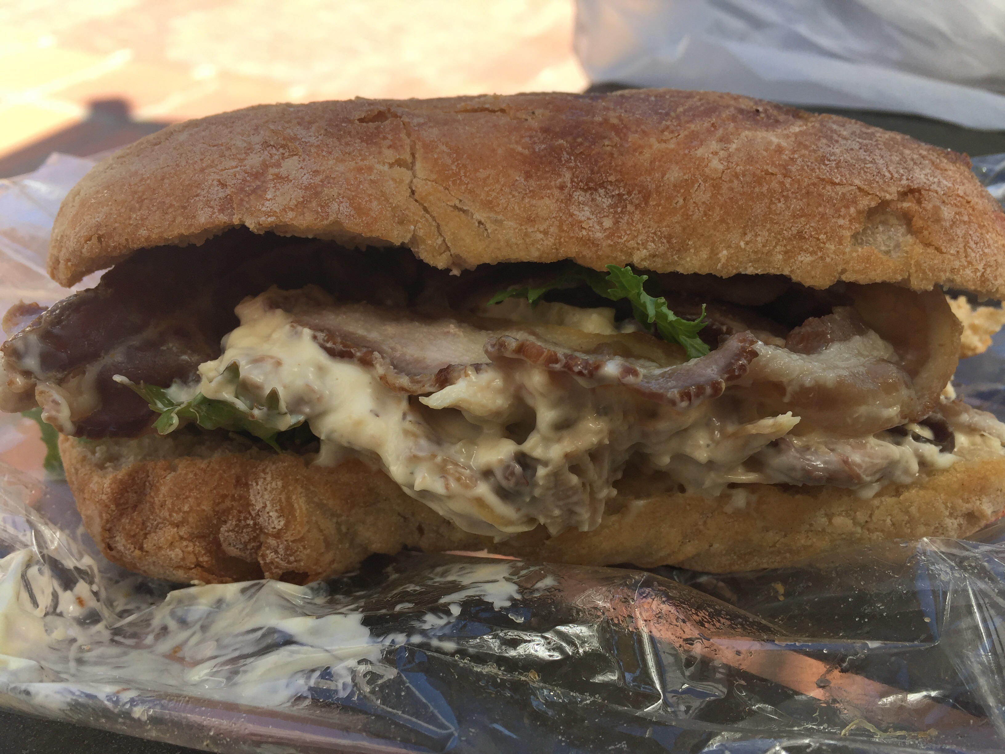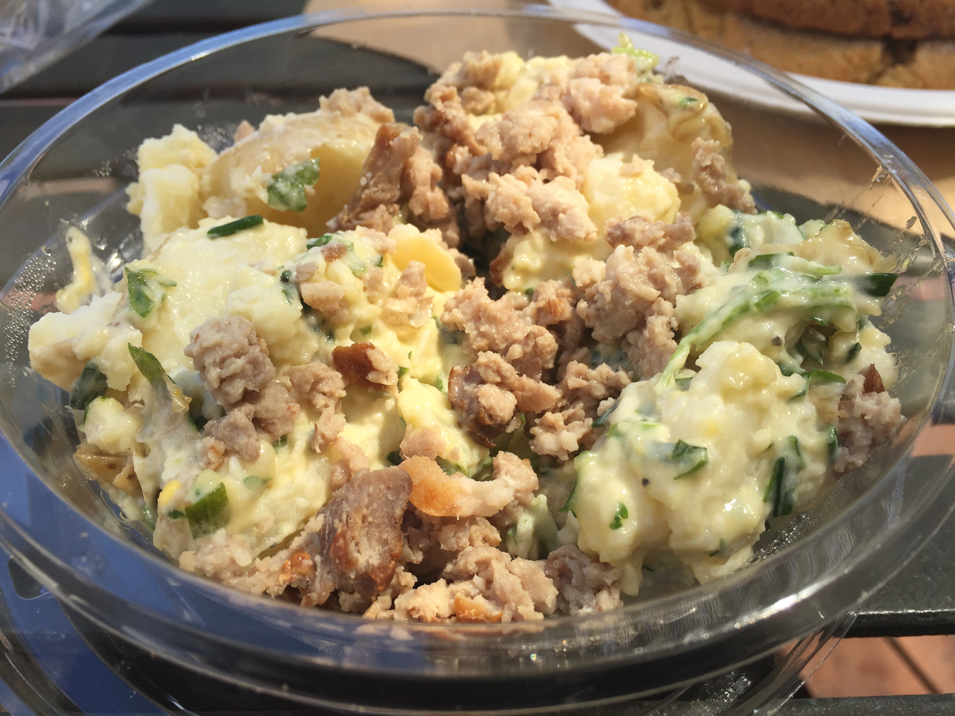 The sandwich was not very nice, there was half cooked bacon generously layered on top and the fatty consistency was rather horrid in your mouth. I also found a large piece of bone in my chicken so I was rather unimpressed. The ciabatta bread was lovely as was the flavour of the potato salad.