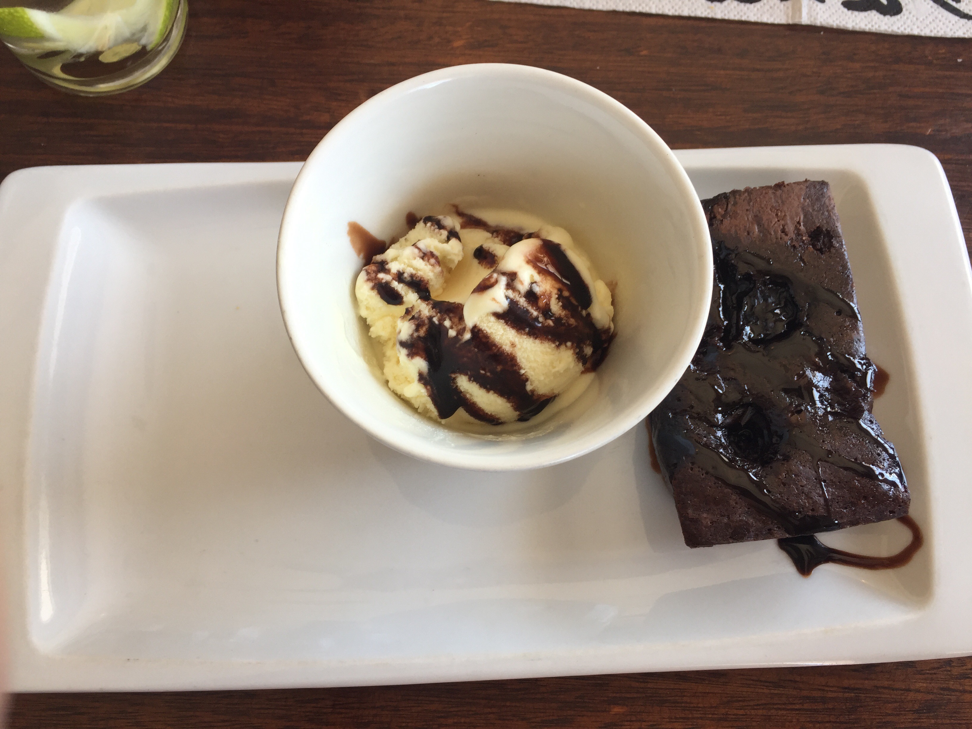 The brownie was more like a chocolate fondant in texture as it was undercooked. It was a soft smushy almost pudding like consistency. It needed 5 more minutes in the oven and would have been amazing as the flavours were perfection but it is really rich.
