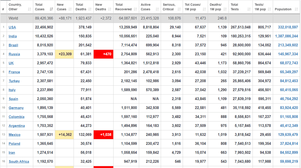 On a global front, SA is ranked 16th for total number of cases. This is the same as last week. The week prior we had been at 18th. SA is now 42nd in the count of deaths per 1 million population. SA was 43rd last week and prior to that had held onto 45th place for total deaths for 1 million population for a few weeks. We are now slowly creeping higher which is quite worrying.