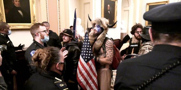 The QAnon supporters such as Jake Angeli, 32. QAnon have spouted all sorts of insane theories about pedophiles, blood drinking celebrities and pizza. Angeli calls himself the ‘Q Shaman’.