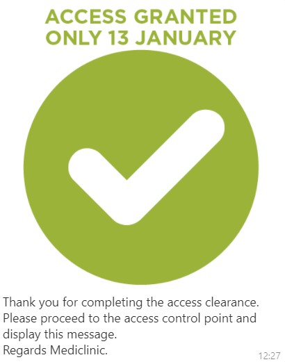 On Wednesday I had an appointment with my gynecologist for my annual check up and pap-smear but I have been having some issues which I was dreading finding out about as I was sure I was going to need a hysterectomy. I was very nervous just about having to go into a hospital with all of the deadly virus germs flying around. The Mediclinic had a great process set up, you send a WhatsApp to their automated system, it then responds with questions about any symptoms you may have had or any exposure to anyone who is positive. Once you answer the questions it gives you a tick box which you show to the security team.