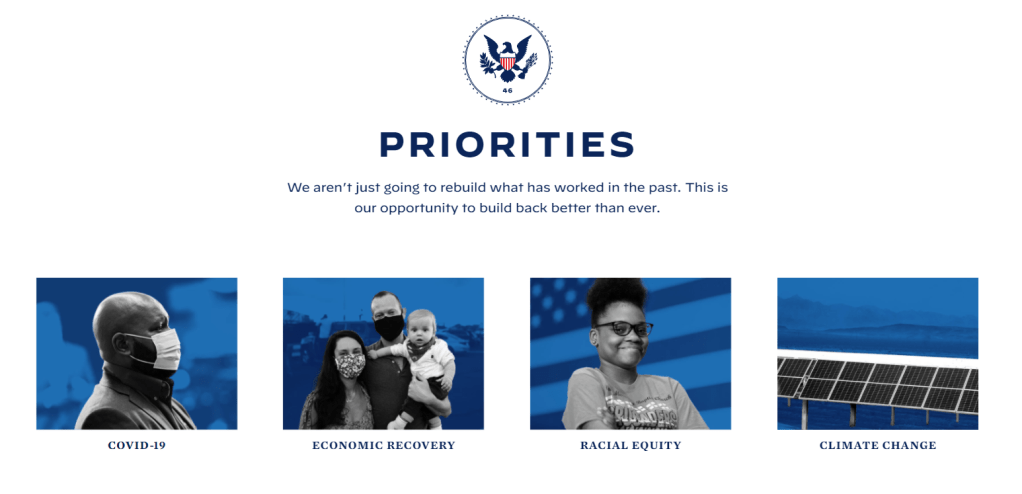 It has been a painful 4 years and I suspect that Biden will have his hands full trying to reverse some of the horrid things implemented by the previous administration, such as changes to immigration policies, environmental policies and other poor decisions made. On the Biden / Harris transition site I was pleased to see their priorities: