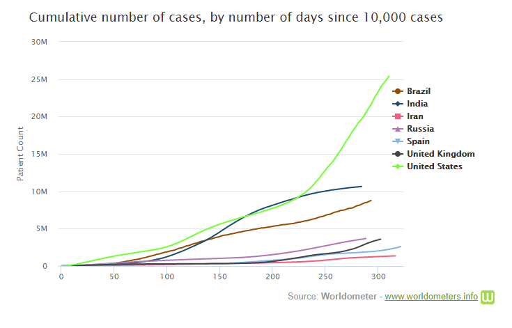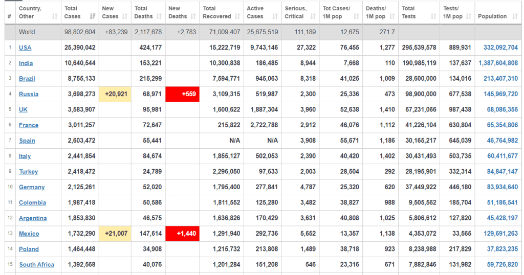 The US has had 424,177 deaths and is 11th place in count of deaths per 1 million population. The UK is now in 6th place and has had 95,981 deaths.