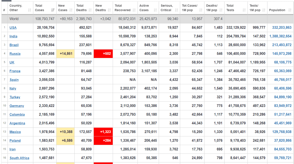 The USA is 9th on the global scale of deaths per 1 million population and have suffered 492,521 deaths in total. The UK is 5th and have had 116,287 total deaths. At least the UK is succeeding in the vaccinations of their citizens and the USA has made progress too but SA has no vaccine in sight.