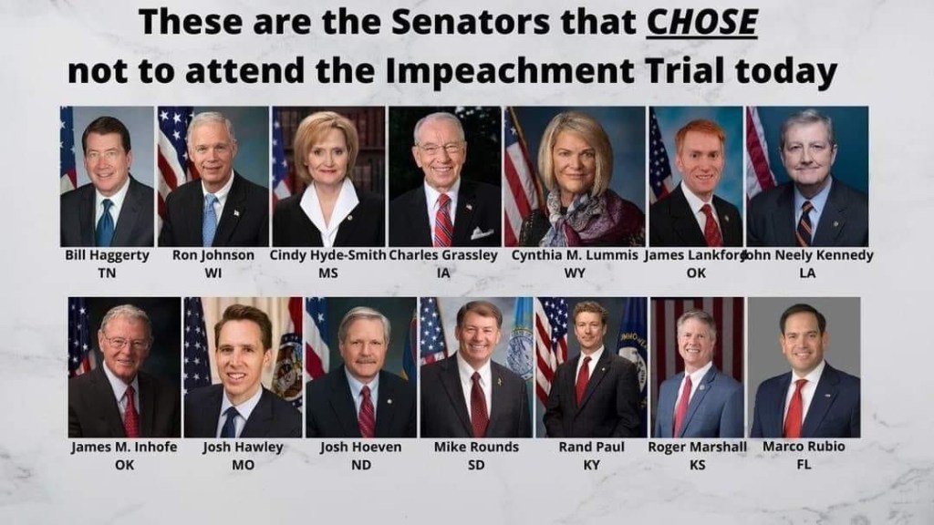Despite the horror of these videos, there are still ReTrumplicans who are refusing to acknowledge that anything out of the ordinary occurred or that Trump was implicated in any wrong doing and many feigned boredom during the presentation. If I were presenting to a client and they behaved in such a disrespectful manner I would be furious but the House managers appeared unfazed. I suspect they know that some of these people who worship at the feet of their idol Trump will never be swayed to do the right thing.