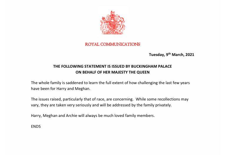 The palace issued a very brief statement in response which basically translates to ‘meh’ in my opinion and the phrase ‘some recollections may vary’ is tantamount to saying they do not believe Meghan and Harry’s story of the conversation about what shade Archie may be when born.