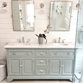 We had booked Nic, a local carpenter, to come over on Tuesday to discuss the vanity we want made and to give us a quote. I want something similar to this. We have sourced under counter sinks and will then choose a dark grey slab of stone to go on top and we will have the unit painted a soft grey.