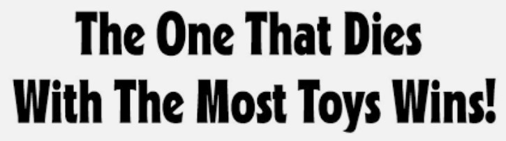 Or is that a Toxic Masculinity type viewpoint because I struggled to find an image that was not ‘He that dies…’ rather than the genderless ‘The One that dies…..’? I have no need to have unfathomable depths of cash. My perfect level of wealth would be being able to afford to go visit my Mom several times a year and to fly there first class not because I want champagne but because I am overweight and arthritic. My needs are not exorbitant, are they?