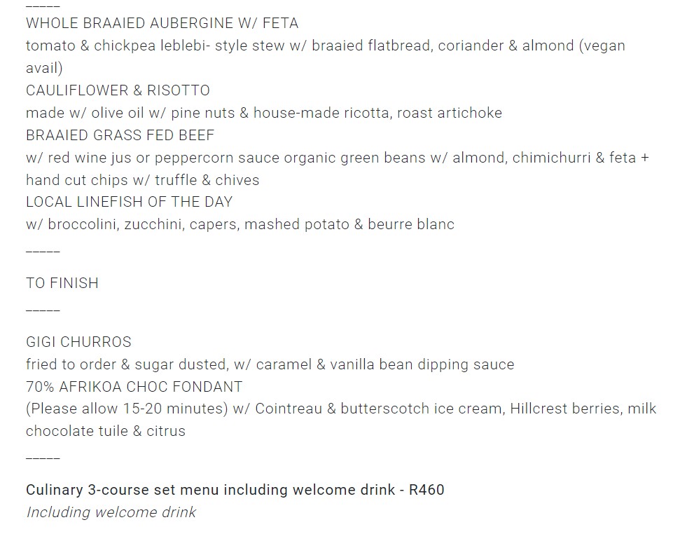 I was sure that the menu had mentioned some sort of potato with the main, so I questioned the lack of chips with our waitress and she looked at me like I had two heads and said I was mistaken, the dish did not come with potatoes. I detest green beans and did not want just a slab of meat for dinner so I ordered fries in addition to the set menu price. I checked the menu the next day and our meal should have had chips, except we had to pay extra and wait for mine and Norm never even got his!
