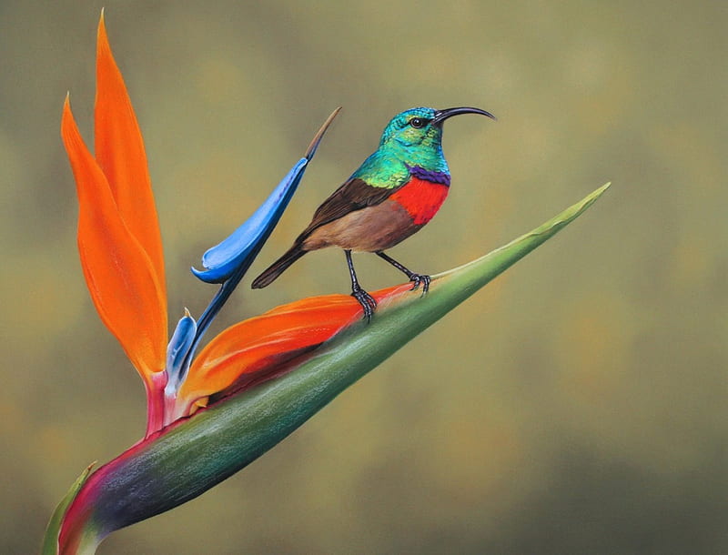After everyone left I was sitting outside and I had my specs off looking at my phone when I heard a little faint drumbeat sound. I looked to my right and there was a male Sunbird hovering next to the bright orange leaves of the strelitzia. His wings were beating against the leaves of the plant, tippy tap tap.