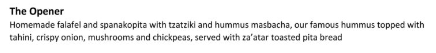 The staff brought out large platters of starters.