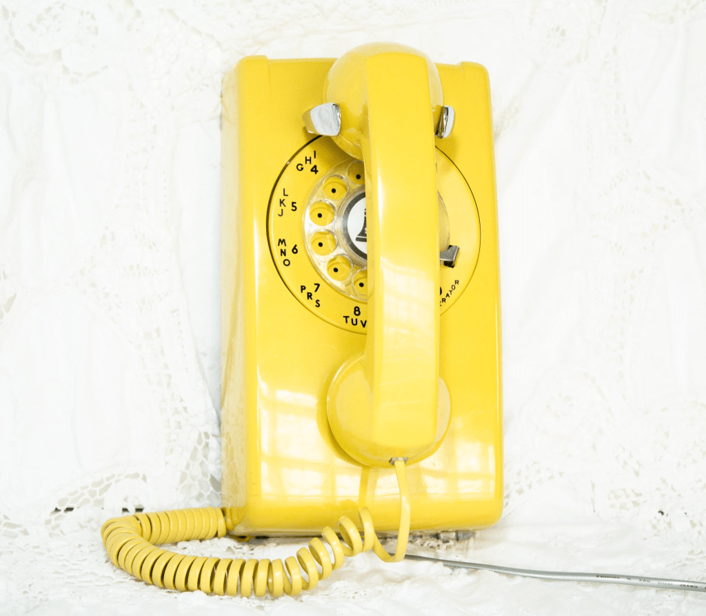 I remember it like it was yesterday, my Mom was holding the bright toxic yellow phone receiver in her hand. It was a rotary dial phone with a really long, stretched cord and was attached to the kitchen wall.