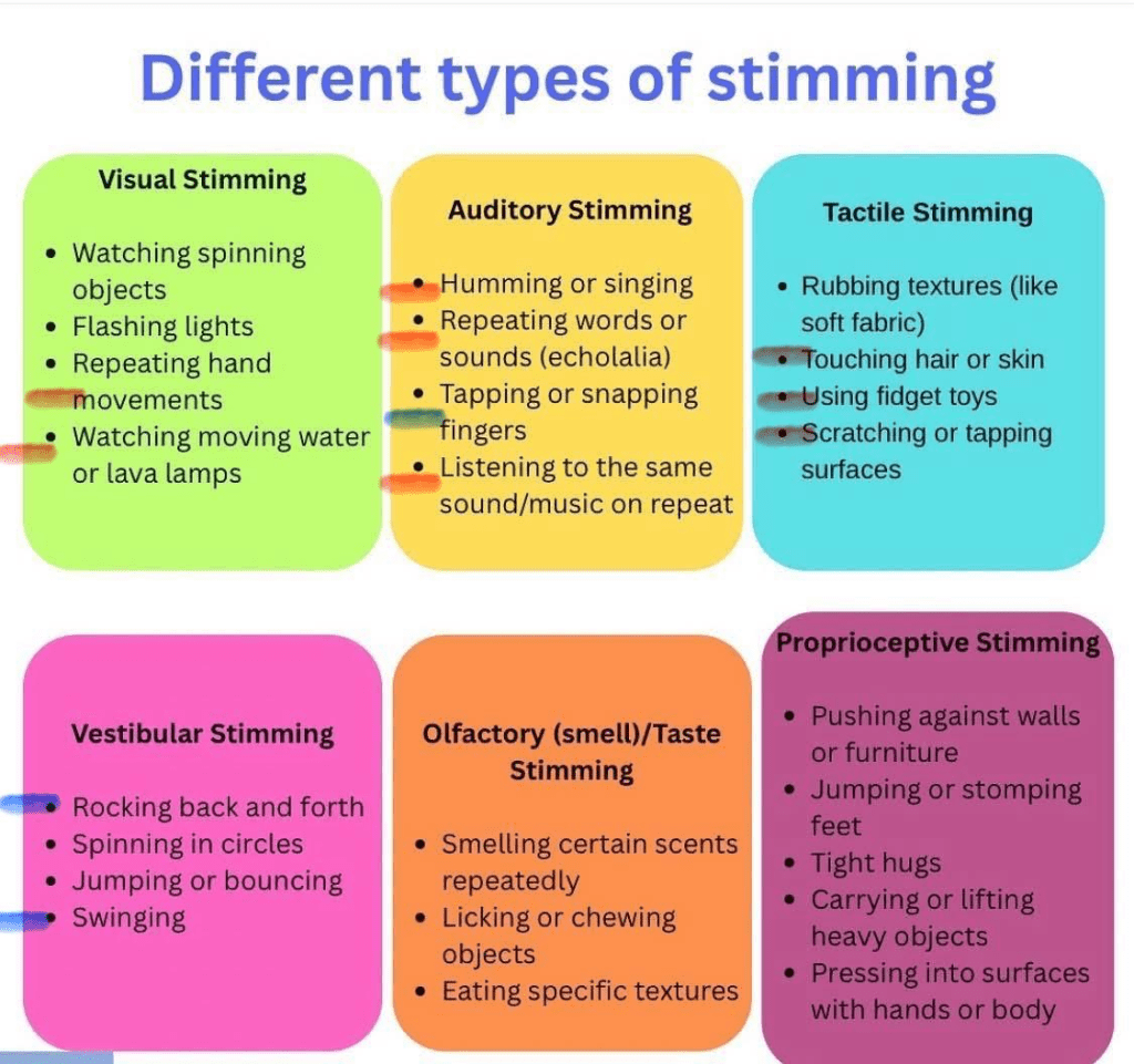 This graphic came up on my social media and it made me realise that all of the time I spend sitting and staring at things (lizards) in my garden is a form of stimming. I marked off the ones which I am aware I do, however I am sure there are others I am not even aware that I do! What about you? I have no shame in my game, whatever it takes to keep me sane. I could give no cares about what other people think.
