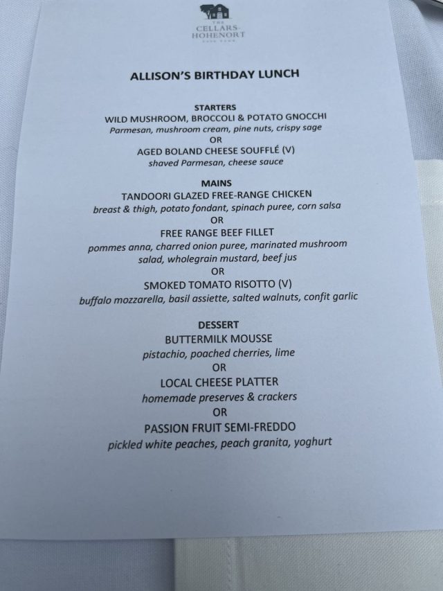 It actually stopped raining by the time we woke on Sunday. We were attending a friend’s birthday party at the beautiful Cellars Hohenhort.