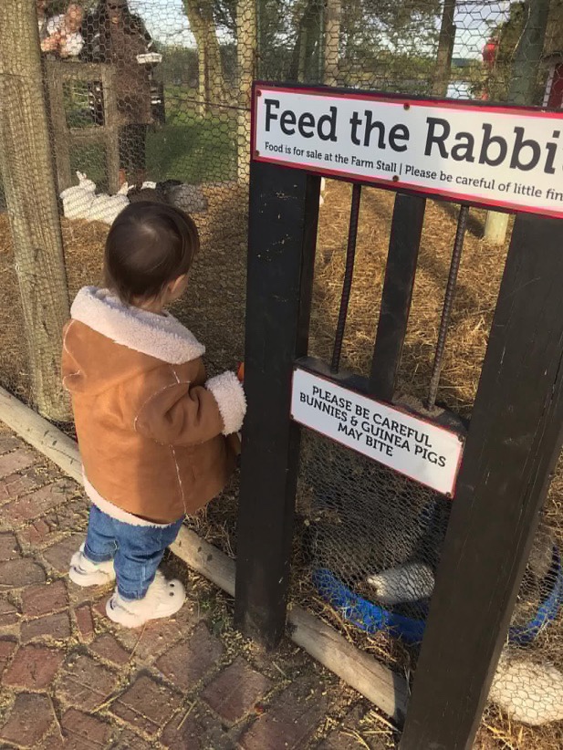 We had lunch and the babies then fed the bunnies and guinea pigs bits of carrot and pellets.