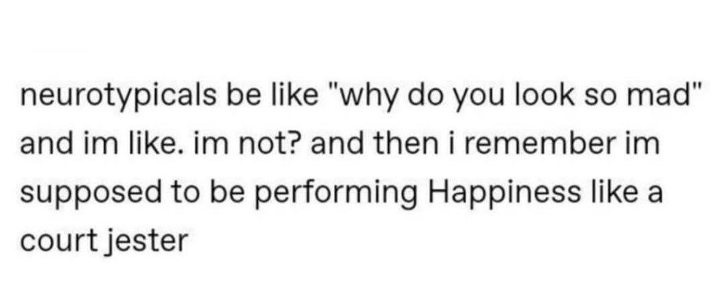 The mask is off and I shall not put it back on because of someone else’s discomfort. As an autistic sometimes my face is expressionless, but often it is so easily read it may as well have words printed across it.