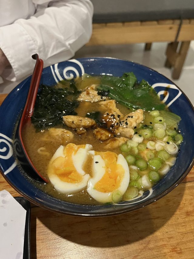 Norm ordered a bowl of their ramen which he loves. He had the teriyaki chicken.