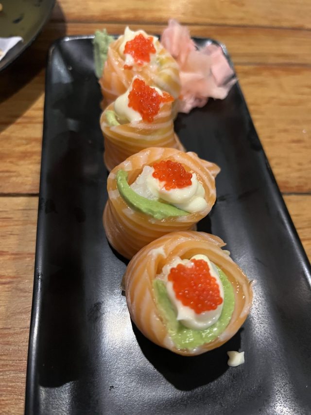 I knew that I would be struggling to eat more but I also did not want to just sit and watch our Norm slurp his way through this giant trough of ramen, so I ordered some sushi as the chef is well known for it and I had never tried his. I had a portion of salmon roses. They were so delicate and the flavour was divine.
