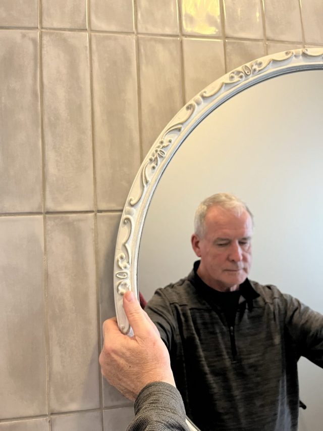 The mirror I ordered arrived at the local shop and Norm went to collect it in Green Point. I love it so much!! I love the colour of it next to my tiles, I love the simplicity of the design, I love the shape and size of it next to my baby sink. I love it in case you did not get that. They will hang it when the floors are done and they do the skirting boards, toilet and the rest of the outstanding bits and pieces.