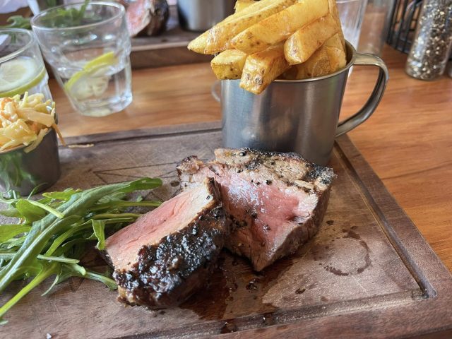 Anyway. Enough reminiscing, back to Sunday. Norm and I both fancied a steak so we ordered the fillet steak, medium rare. It had the most amazing crust on the outside, yet the steak was tender and cooked perfectly.