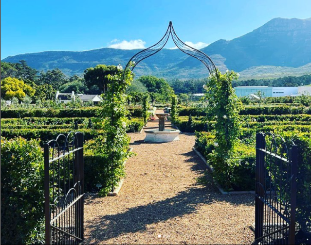 Last Sunday Norman and I met up with Caitlin, Wes and Bree for lunch at Ember & Oak, a restaurant located in Constantia Uitsig vineyard estate. The estate is huge with many different restaurants available to choose from. There is a beautiful garden in the centre of the estate and along one side of the gardens there are small cape cottage style buildings which house the restaurants. As we had never been there before we had no clue where to park or walk as there are no signs (or they were not visible to my nearsighted eyes). We parked the car and Norm spotted the venue and we wandered over. Cait and Wes had already arrived and the staff were organising our table outside on the covered patio. At first it seemed very crowded, sunny and hot, but it was actually fine. The tables are crowded but not on top of each other.