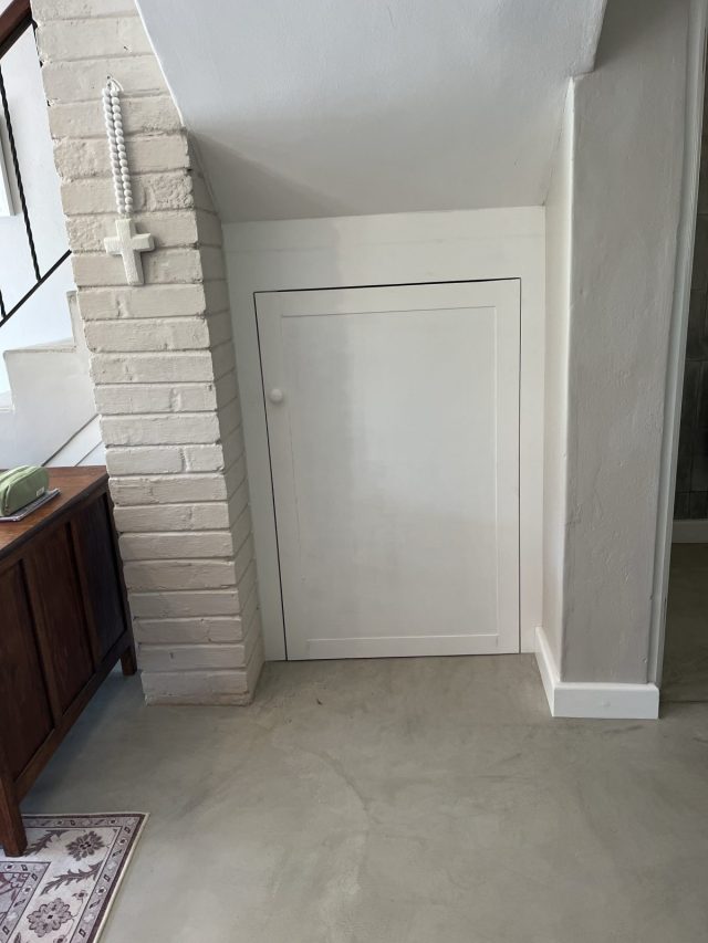 We’ve had a few more things finished off with the house renovation. Nic, the builder came back with his team on Thursday. They did the snag list of all the last bits and pieces to finish off downstairs. They also fitted the panel and door to close in the understairs area. We store all of the cushions for the outside chairs as well as my yoga mats and now we can also store our suitcases in here.