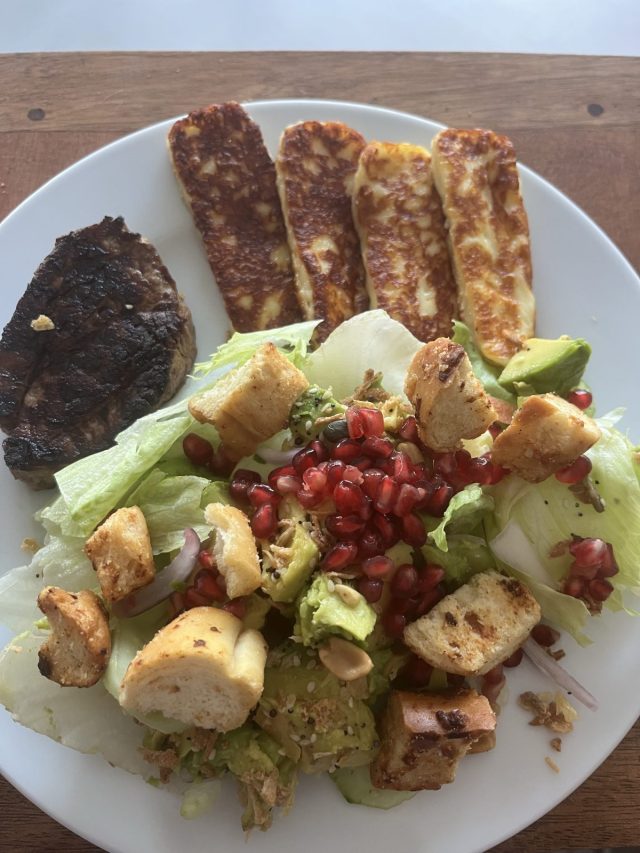 Norm cooked for us on Wednesday night. I prepared a salad and he cooked fillet steak and fried halloumi. It is our favourite summer meal. We change up the salad contents to keep it from getting boring.