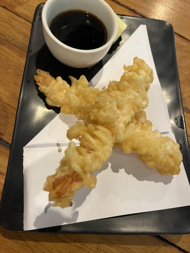 Norm had a bowl of teriyaki beef ramen and I had an order of tempura prawns.