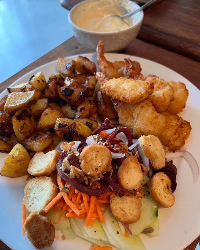 I cooked a nice Sunday meal for myself. I fried potatoes in paprika, garlic and a splash of avocado oil and a bit more olive oil. Once they were mostly cooked I added a chopped onion. These are so reminiscent of home, my grandma made them often. I used the last of the goodies to make a ‘salad’ and I put some shrimp/prawns in the air fryer. I made some ranch dressing from my smuggled powder, some cream frais and mayo. I was happy with my dinner, despite it not being terribly healthy.