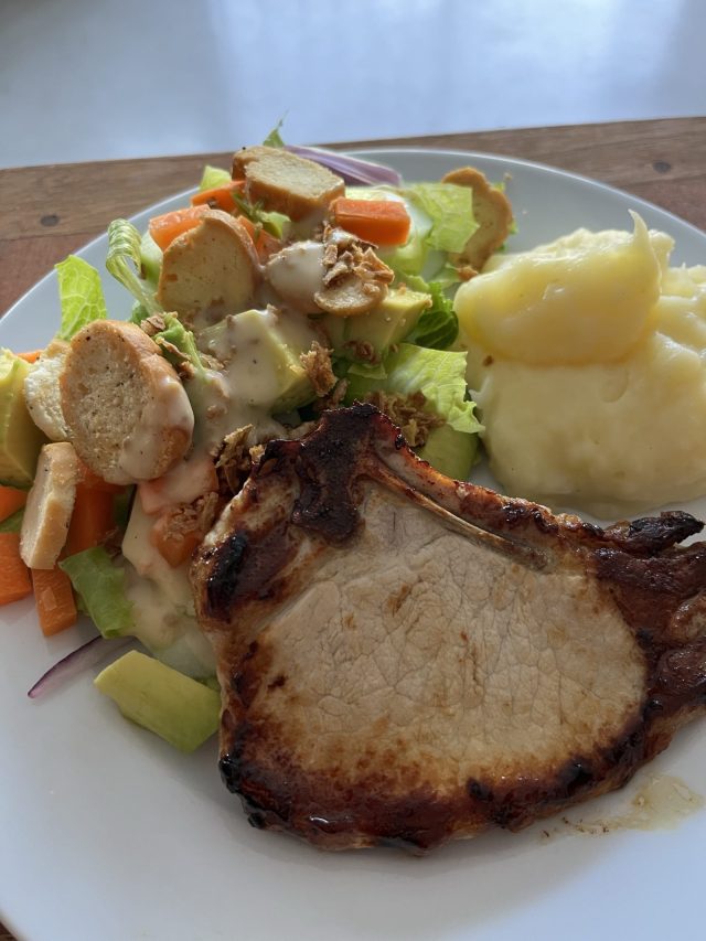 I cooked one night this week too. I fried pork chops, heated some mash and made a salad.