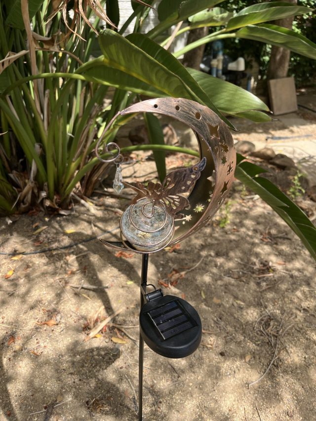 I had a delivery of various solar lights for the garden. One of the lights that arrived had to be returned as it did not work. This one looks lovely at night and is so cute in the day time too.
