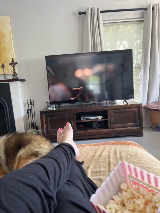 Norm left for the airport around 2pm and I decided to settle in to watch Bridgerton’s new season. Poppy snuggled up with me and I happily munched my popcorn.