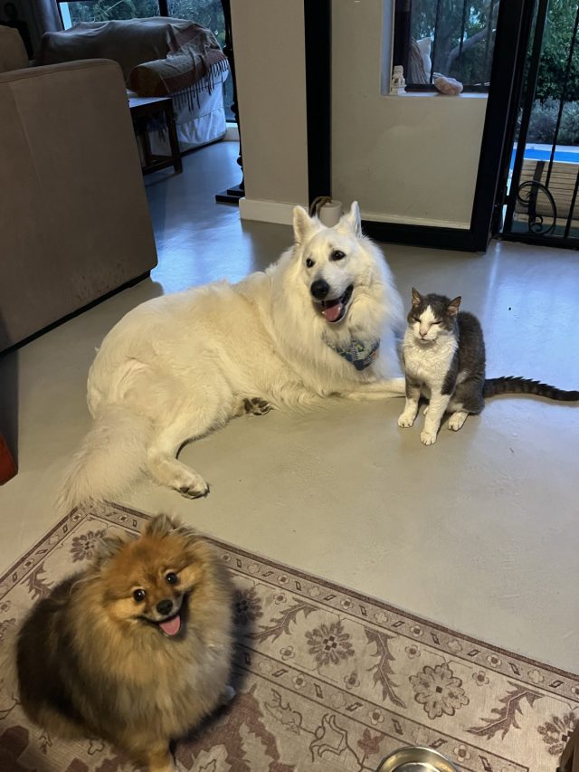 The groomers came on Thursday and they told me that Finn’s coat was looking fabulous! The dogs both smell a lot better that is for sure. Finn’s hair went from being shaved, his skin covered in sores to now just one cyst on his back which is not raw. His hair is looking thick and lush.