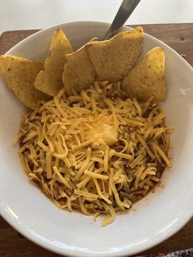 After work finished I heated up the chili con carne I made the night before and had dinner. Not a great choice considering how hot it was outside.