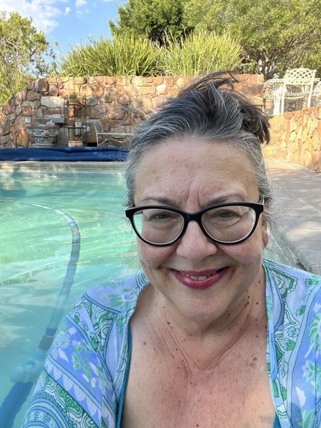 On Wednesday it got up to 37℃. It was so hot it was just unbearable. The optometrist office called and said my new specs were ready so I went to collect them. At least I got a few minutes in an air conditioned car. Apologies for the state of me, I did throw on a kimono over my sundress to go to the shop, I would not have exposed that sight to anyone. Funny thing is I posted this pic on Threads and gained 300 new creepy followers. Old Lady Thirst Trap.