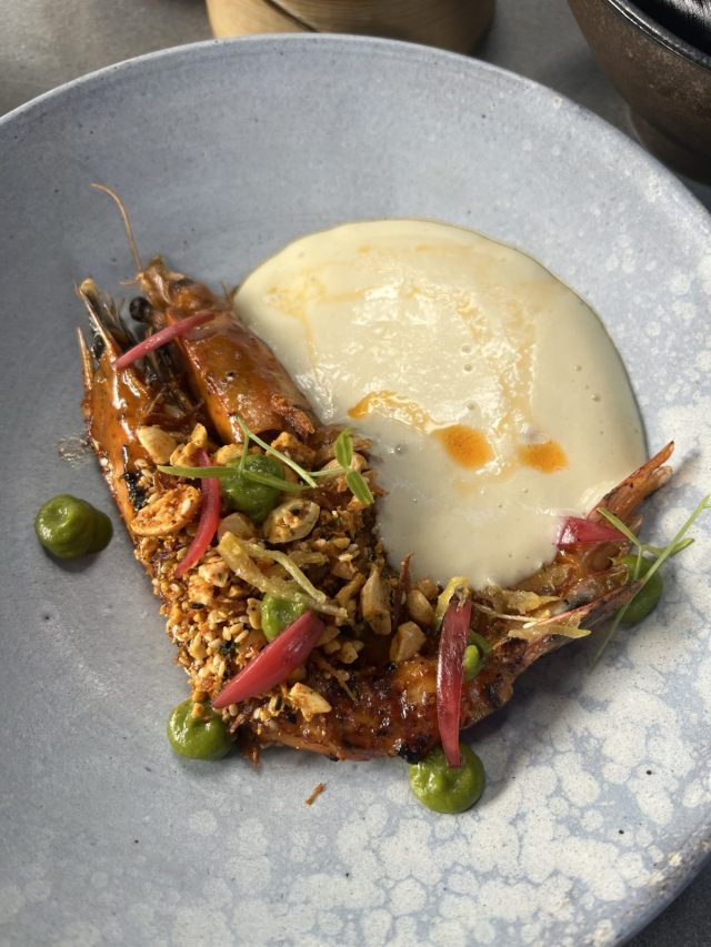 I had the coal-fired prawns in a peri-peri cashew crumb charred salsa verde with a smoked garlic sauce. This dish was R255 (approx $15 USD). The sauce was gorgeous, the prawns were fresh, plump and tender. I loved this dish. I appreciated that the chef had removed the head, cleaned it, and left only a small little bit of tail attached. It was easy to eat with a knife and fork. This was my #1.