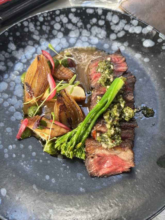 Next he ate the Wagyu flat iron with mushroom ragout and sauce Diane. It was the most expensive dish on the menu at R495 (approx. $30 USD). However it was the worst dish of the day, it was very tough. He chewed and chewed and chewed. He had to spit out several bites as they were gristle. It was not very nice, the waiter noticed the chewed bits on the side of the plate and asked ‘was it chewy’ as if he expected that feedback. I assume since he ate the bits he could chew no one even popped over to chat and say sorry you spent almost R500 on half a plate of gristle which was a bit sad. Being wagyu it had plenty of flavour, but you need to be able to consume it.
